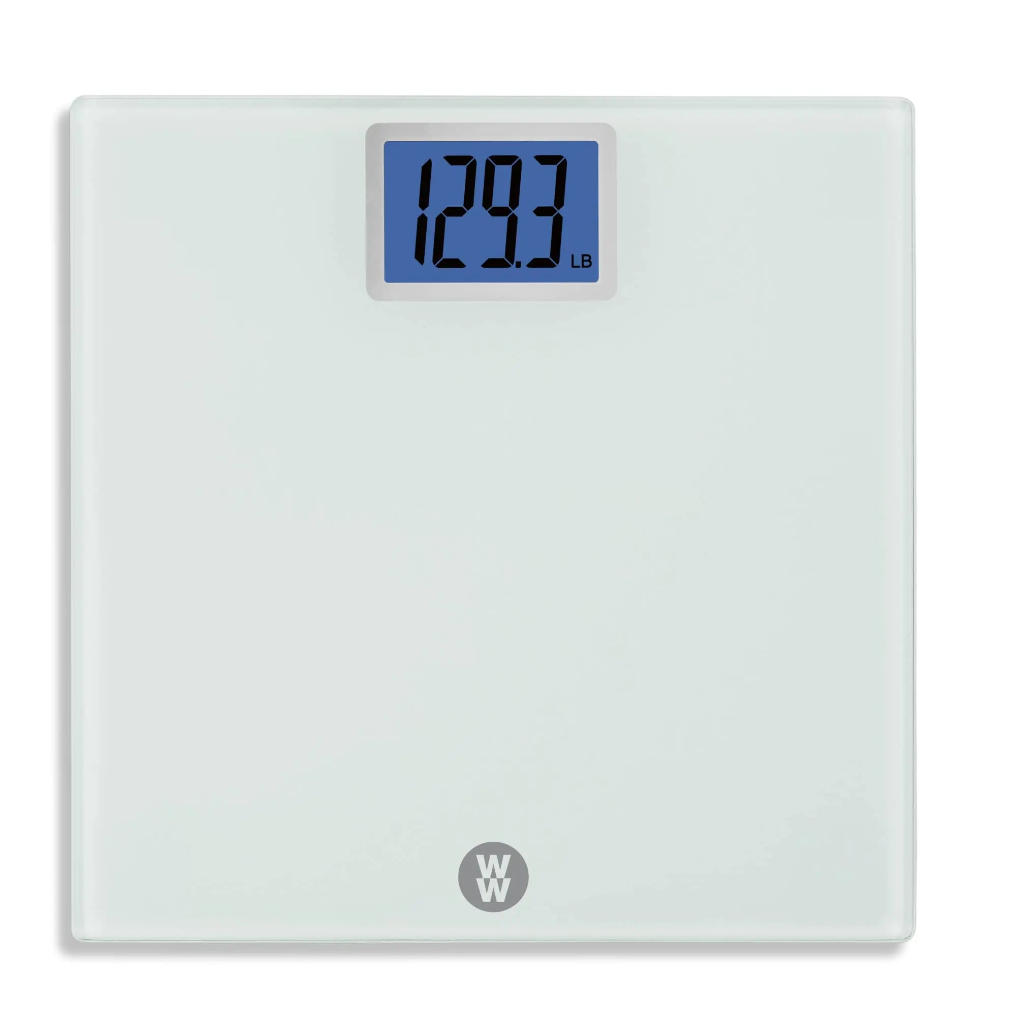 Stay on top of your weight-management goals with the Digital Glass Scale with Jumbo 2.0" Backlit Display by WW Scales by Conair. Its easy-to-read 2.0 in./51 mm digital readout displays weight with 0.1 lb. or 50 g precision and has a bright blue backlight for maximum visibility. The white tempered safety glass platform and contrasting metallic bezel provide an elegant contemporary look. Durable construction enables this sturdy impact-resistant scale to weigh up to 400 lbs./182 kg. The scale’s instant-on feature means it’s easy to use—just step right on! Included are 3 long-life AAA batteries so your scale is ready to weigh right out of the box.